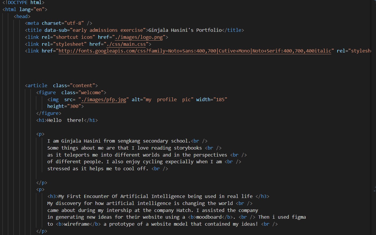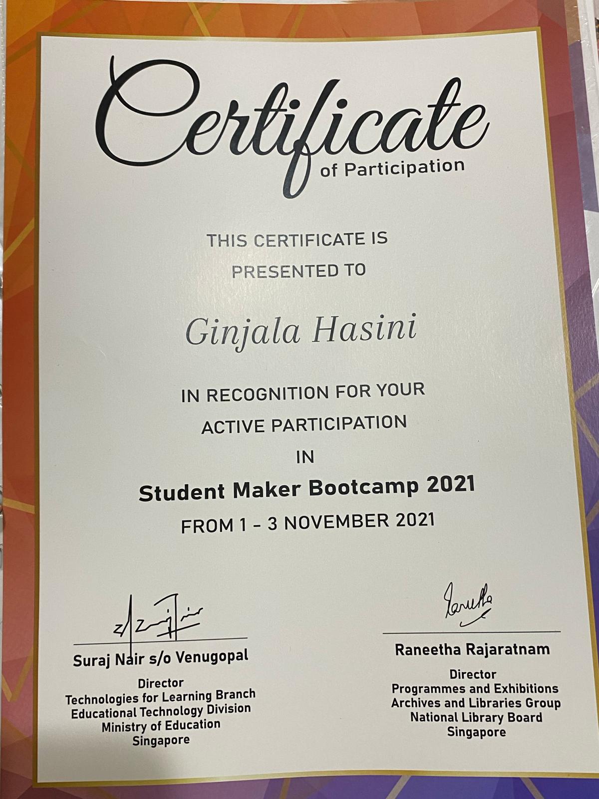 I am Ginjala Hasini from sengkang secondary school. Some things about me are that I love reading storybooks as it teleports me into different worlds and in the perspectives of different people. I also enjoy cycling expecially when I am stressed as it helps me to cool off.