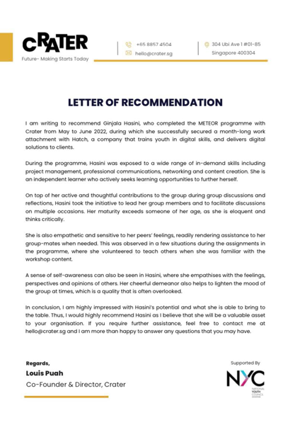 I participated in the Singapore Youth Festival in 2020,2022 and 2024