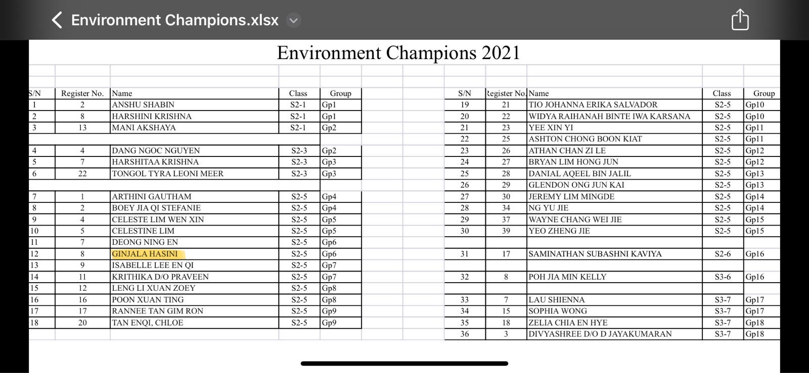 I was an environmental champion since 2021. Our job is to ensure that the plants in the school are safe and we planted new plants around the school to make the school more green. We also had to give presentations to our classmates on ways we all can contribute to make Singapore a more clean and green country for all.
