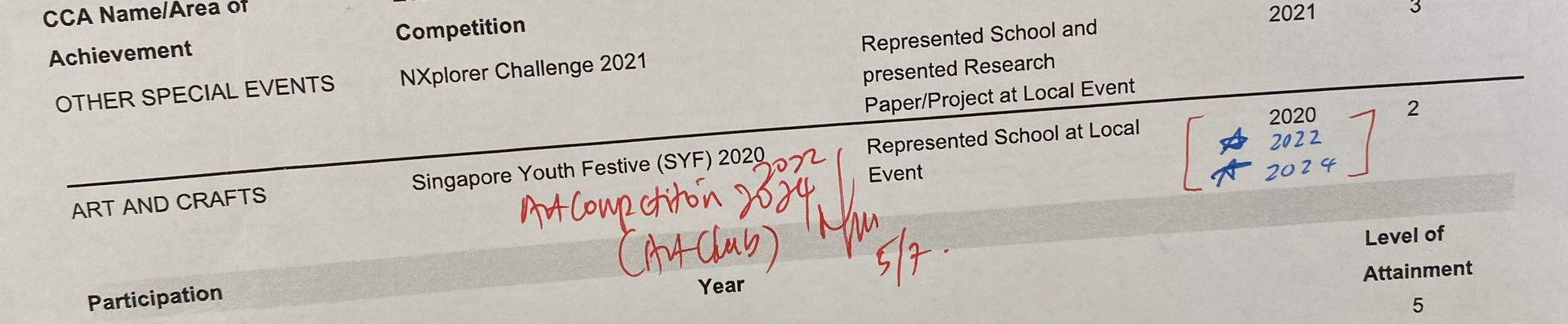 I participated in the Singapore Youth Festival in 2020,2022 and 2024